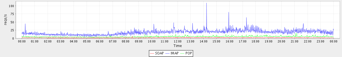 Host zm02.stanford.edu: Mailboxd: Request Rate by Client Protocol