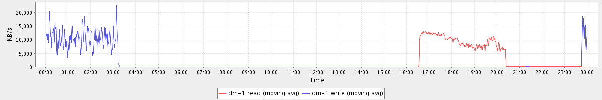 avg(dm-1 read) = 14.92 avg(dm-1 write) = 385.65