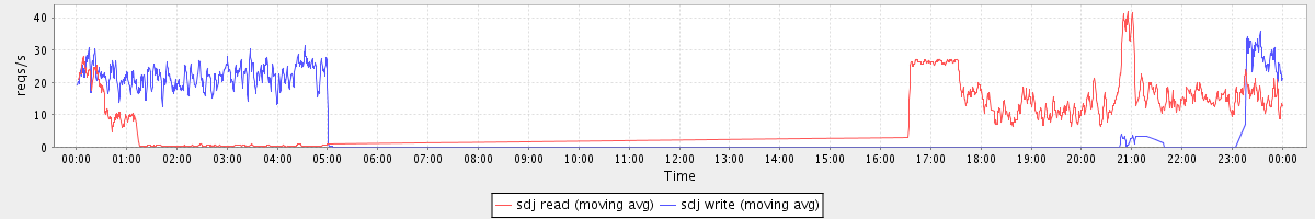 avg(sda read) = 1.43 avg(sda write) = 4.38