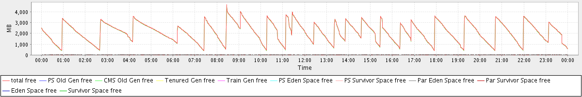 avg(total free) = 2116.14 avg(PS Old Gen free) = 0.00 avg(CMS Old Gen free) = 2095.79 avg(Tenured Gen free) = 0.00 avg(Train Gen free) = 0.00 avg(PS Eden Space free) = 0.00 avg(PS Survivor Space free) = 0.00 avg(Par Eden Space free) = 20.28 avg(Par Survivor Space free) = 0.06 avg(Eden Space free) = 0.00 avg(Survivor Space free) = 0.00