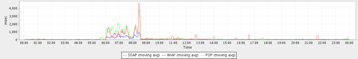 Host zm05.stanford.edu: Mailboxd: Response Time by Client Protocol