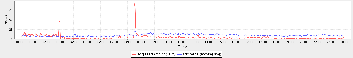 avg(sda read) = 1.08 avg(sda write) = 3.39