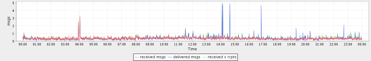 avg(received msgs) = 0.34 avg(delivered msgs) = 0.33 avg(received x rcpts) = 0.41