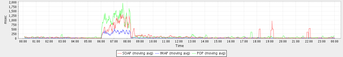 Host zm07.stanford.edu: Mailboxd: Response Time by Client Protocol