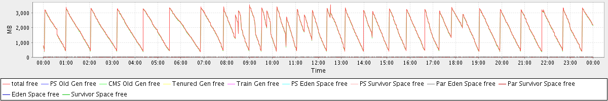 avg(total free) = 1933.17 avg(PS Old Gen free) = 0.00 avg(CMS Old Gen free) = 1912.18 avg(Tenured Gen free) = 0.00 avg(Train Gen free) = 0.00 avg(PS Eden Space free) = 0.00 avg(PS Survivor Space free) = 0.00 avg(Par Eden Space free) = 20.92 avg(Par Survivor Space free) = 0.06 avg(Eden Space free) = 0.00 avg(Survivor Space free) = 0.00