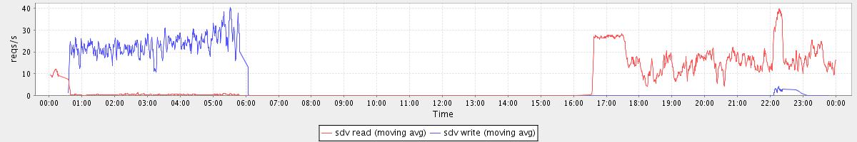 avg(sda1 read) = 20.06 avg(sda1 write) = 45.97