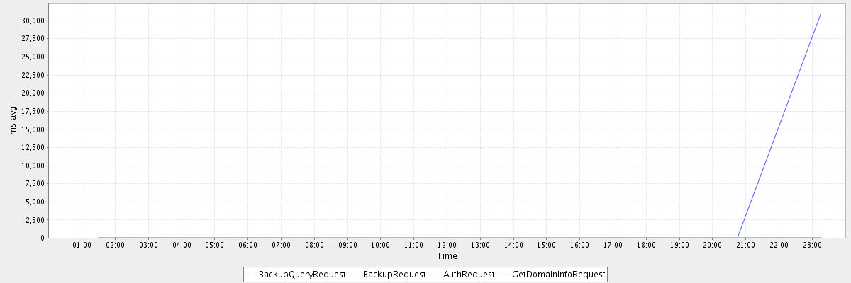 avg(BackupQueryRequest) = 333.00 avg(BackupRequest) = 15547.50 avg(AuthRequest) = 58.75 avg(GetDomainInfoRequest) = 0.12