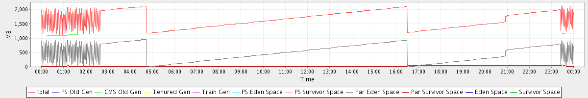 avg(total) = 1654.80 avg(PS Old Gen) = 0.00 avg(CMS Old Gen) = 1150.21 avg(Tenured Gen) = 0.00 avg(Train Gen) = 0.00 avg(PS Eden Space) = 0.00 avg(PS Survivor Space) = 0.00 avg(Par Eden Space) = 477.45 avg(Par Survivor Space) = 27.13 avg(Eden Space) = 0.00 avg(Survivor Space) = 0.00