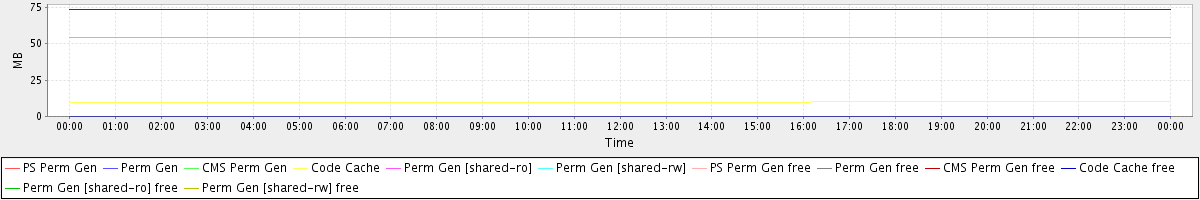 avg(PS Perm Gen) = 0.00 avg(Perm Gen) = 0.00 avg(CMS Perm Gen) = 54.32 avg(Code Cache) = 9.94 avg(Perm Gen [shared-ro]) = 0.00 avg(Perm Gen [shared-rw]) = 0.00 avg(PS Perm Gen free) = 0.00 avg(Perm Gen free) = 0.00 avg(CMS Perm Gen free) = 73.68 avg(Code Cache free) = 0.13 avg(Perm Gen [shared-ro] free) = 0.00 avg(Perm Gen [shared-rw] free) = 0.00