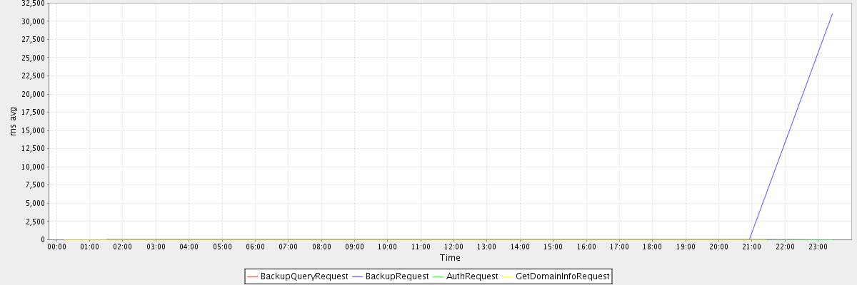 avg(BackupQueryRequest) = 1064.00 avg(BackupRequest) = 15556.50 avg(AuthRequest) = 49.75 avg(GetDomainInfoRequest) = 0.29