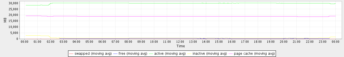 avg(swapped) = 0.25 avg(free) = 289.65 avg(active) = 29830.18 avg(inactive) = 950.14 avg(page cache) = 18896.36