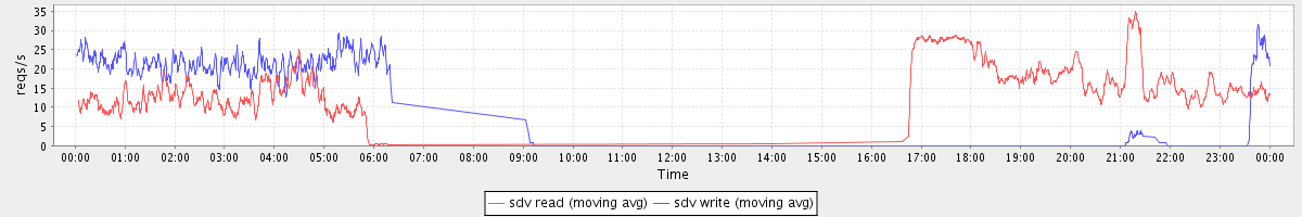 avg(sda read) = 29.97 avg(sda write) = 58.58
