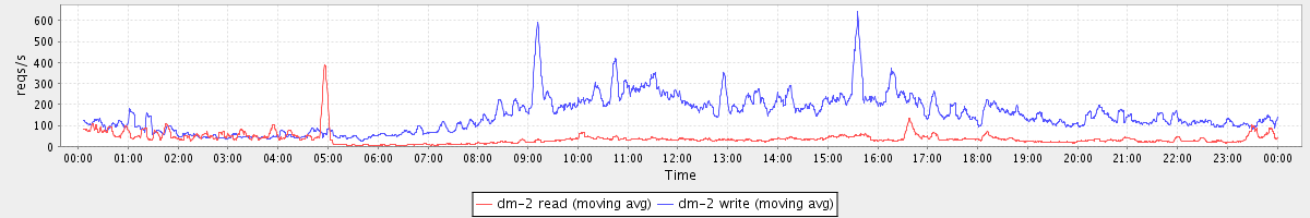 avg(dm-0 read) = 2704.47 avg(dm-0 write) = 319.86