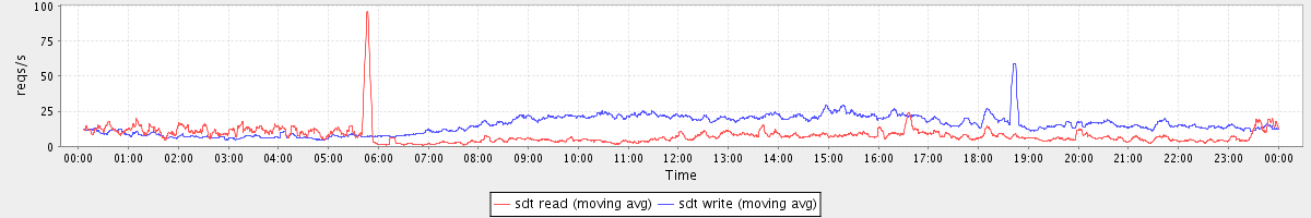avg(sda read) = 1.72 avg(sda write) = 3.76