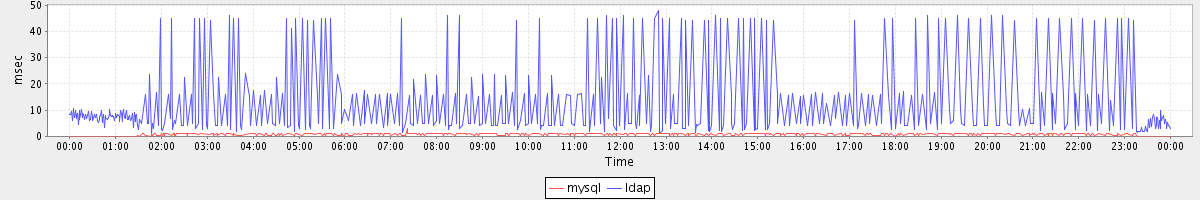 avg(mysql) = 0.30 avg(ldap) = 4.76
