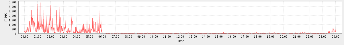 avg(SyncGalRequest) = 1866.77 avg(BrowseRequest) = 728.00 avg(SearchGalRequest) = 1317.65 avg(ModifyTaskRequest) = 716.00 avg(BackupRequest) = 372336.00 avg(FolderActionRequest.empty) = 4110.31 avg(SendInviteReplyRequest) = 492.56 avg(BackupQueryRequest) = 635.20 avg(GetQuotaUsageRequest) = 3147.00 avg(FolderActionRequest.read) = 1619.50