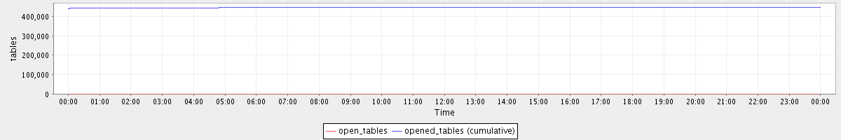 avg(open_tables) = 397.00 avg(opened_tables (cumulative)) = 445864.10