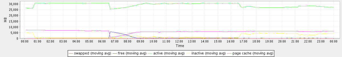 avg(swapped) = 0.25 avg(free) = 378.87 avg(active) = 29190.56 avg(inactive) = 1879.49 avg(page cache) = 5896.25