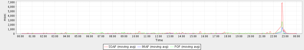 Host zm05.stanford.edu: Mailboxd: Response Time by Client Protocol