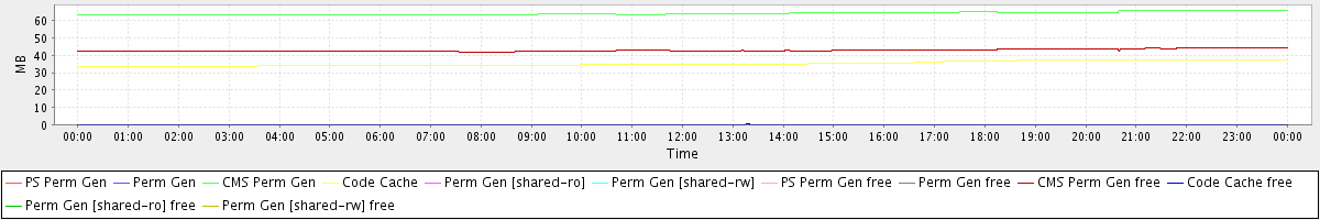 avg(PS Perm Gen) = 0.00 avg(Perm Gen) = 0.00 avg(CMS Perm Gen) = 64.14 avg(Code Cache) = 35.16 avg(Perm Gen [shared-ro]) = 0.00 avg(Perm Gen [shared-rw]) = 0.00 avg(PS Perm Gen free) = 0.00 avg(Perm Gen free) = 0.00 avg(CMS Perm Gen free) = 42.82 avg(Code Cache free) = 0.08 avg(Perm Gen [shared-ro] free) = 0.00 avg(Perm Gen [shared-rw] free) = 0.00