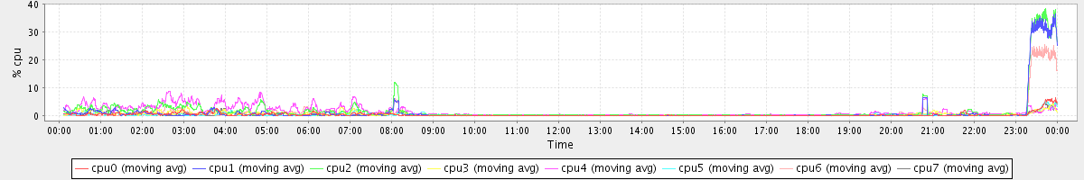 avg(cpu0) = 0.49 avg(cpu1) = 0.41 avg(cpu2) = 0.35 avg(cpu3) = 0.35 avg(cpu4) = 0.24 avg(cpu5) = 0.19 avg(cpu6) = 0.19 avg(cpu7) = 0.14