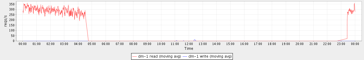 avg(dm-1 read) = 61.32 avg(dm-1 write) = 0.20