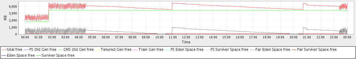 avg(total free) = 3858.49 avg(PS Old Gen free) = 0.00 avg(CMS Old Gen free) = 3318.30 avg(Tenured Gen free) = 0.00 avg(Train Gen free) = 0.00 avg(PS Eden Space free) = 0.00 avg(PS Survivor Space free) = 0.00 avg(Par Eden Space free) = 444.99 avg(Par Survivor Space free) = 95.20 avg(Eden Space free) = 0.00 avg(Survivor Space free) = 0.00