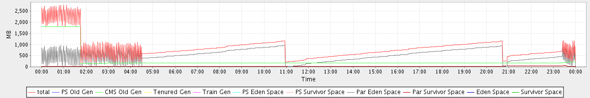 avg(total) = 845.95 avg(PS Old Gen) = 0.00 avg(CMS Old Gen) = 300.70 avg(Tenured Gen) = 0.00 avg(Train Gen) = 0.00 avg(PS Eden Space) = 0.00 avg(PS Survivor Space) = 0.00 avg(Par Eden Space) = 519.89 avg(Par Survivor Space) = 25.36 avg(Eden Space) = 0.00 avg(Survivor Space) = 0.00