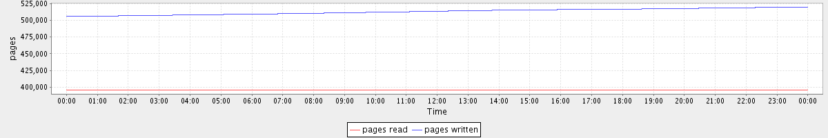 avg(pages read) = 395592.00 avg(pages written) = 513431.00