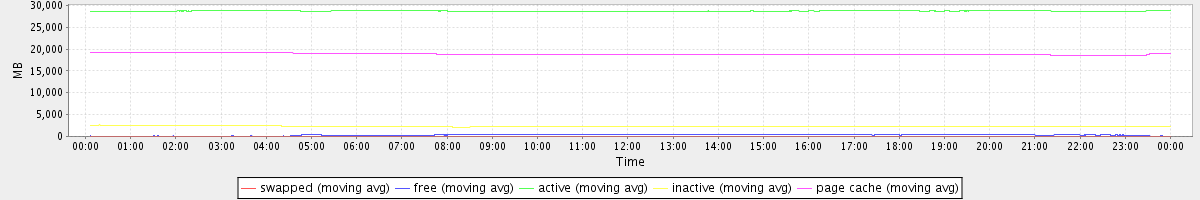 avg(swapped) = 0.25 avg(free) = 322.30 avg(active) = 28725.70 avg(inactive) = 2278.78 avg(page cache) = 18857.82