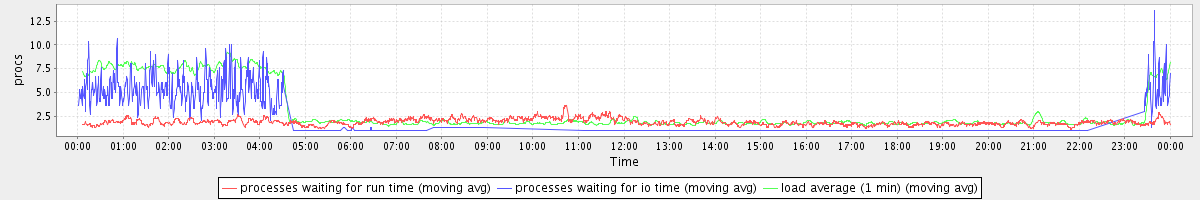 avg(processes waiting for run time) = 1.86 avg(processes waiting for io time) = 1.21 avg(load average (1 min)) = 3.04