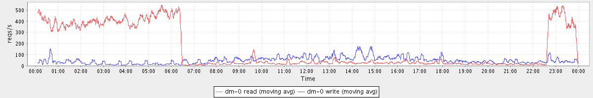 avg(dm-1 read) = 92.42 avg(dm-1 write) = 642.41