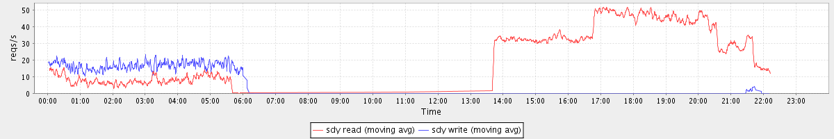 avg(sda1 read) = 38.18 avg(sda1 write) = 52.76