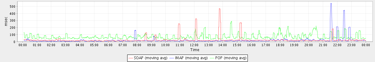 Host zm08.stanford.edu: Mailboxd: Response Time by Client Protocol