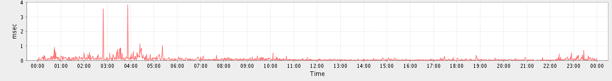 max(GetMsgRequest) = 42.00 max(SearchRequest) = 47.00 max(SearchConvRequest) = 50.00 max(ItemActionRequest.move) = 46.00 max(MsgActionRequest.move) = 140.00 max(MsgActionRequest.delete) = 236.00 max(SetAppointmentRequest) = 53.00 max(NoOpRequest) = 70.00 max(GetFolderRequest) = 372.00 max(SyncRequest) = 50.00