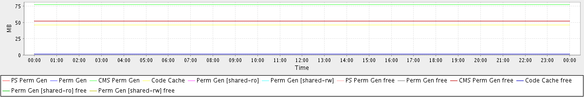 avg(PS Perm Gen) = 0.00 avg(Perm Gen) = 0.00 avg(CMS Perm Gen) = 77.43 avg(Code Cache) = 46.36 avg(Perm Gen [shared-ro]) = 0.00 avg(Perm Gen [shared-rw]) = 0.00 avg(PS Perm Gen free) = 0.00 avg(Perm Gen free) = 0.00 avg(CMS Perm Gen free) = 51.95 avg(Code Cache free) = 1.20 avg(Perm Gen [shared-ro] free) = 0.00 avg(Perm Gen [shared-rw] free) = 0.00