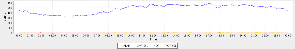 Host zm04.stanford.edu: Mailboxd: Active Connections by Client Protocol