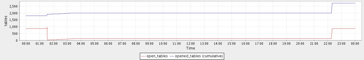 avg(open_tables) = 213.84 avg(opened_tables (cumulative)) = 2035.83