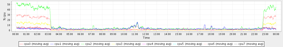 avg(cpu0) = 1.26 avg(cpu1) = 2.78 avg(cpu2) = 10.68 avg(cpu3) = 2.52 avg(cpu4) = 0.55 avg(cpu5) = 0.68 avg(cpu6) = 6.44 avg(cpu7) = 0.67
