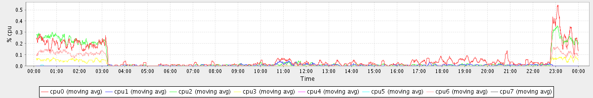 avg(cpu0) = 1.06 avg(cpu1) = 0.66 avg(cpu2) = 1.10 avg(cpu3) = 0.64 avg(cpu4) = 0.42 avg(cpu5) = 0.39 avg(cpu6) = 0.68 avg(cpu7) = 0.34