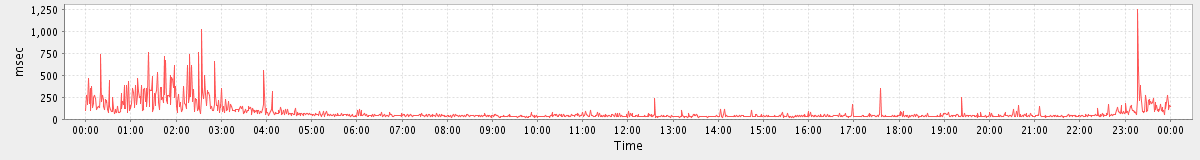 avg(AutoCompleteGalRequest) = 268.96 avg(SyncGalRequest) = 1942.67 avg(SearchGalRequest) = 321.71 avg(MaintainTablesRequest) = 144266.00 avg(GetQuotaUsageRequest) = 3418.00 avg(ConvActionRequest.delete) = 218.04 avg(DeleteAccountRequest) = 12367.00 avg(SendMsgRequest) = 232.38 avg(BackupRequest) = 77512.50 avg(FolderActionRequest.empty) = 3021.59