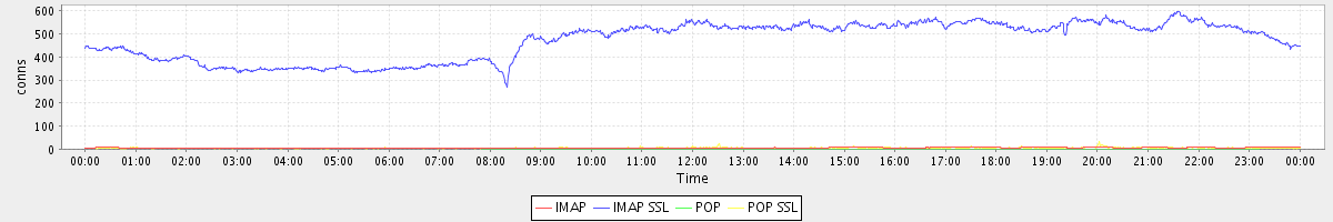 Host zm04.stanford.edu: Mailboxd: Active Connections by Client Protocol