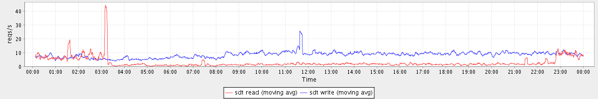 avg(sda read) = 22.74 avg(sda write) = 47.04
