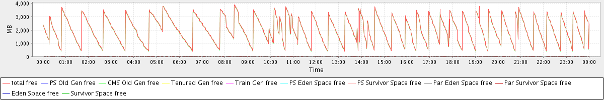 avg(total free) = 2021.49 avg(PS Old Gen free) = 0.00 avg(CMS Old Gen free) = 2000.88 avg(Tenured Gen free) = 0.00 avg(Train Gen free) = 0.00 avg(PS Eden Space free) = 0.00 avg(PS Survivor Space free) = 0.00 avg(Par Eden Space free) = 20.54 avg(Par Survivor Space free) = 0.06 avg(Eden Space free) = 0.00 avg(Survivor Space free) = 0.00