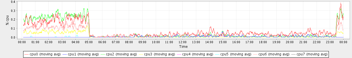 avg(cpu0) = 0.07 avg(cpu1) = 0.01 avg(cpu2) = 0.06 avg(cpu3) = 0.01 avg(cpu4) = 0.00 avg(cpu5) = 0.00 avg(cpu6) = 0.03 avg(cpu7) = 0.00