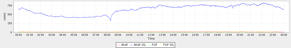 avg(IMAP) = 7.89 avg(IMAP SSL) = 629.81 avg(POP) = 0.69 avg(POP SSL) = 8.84