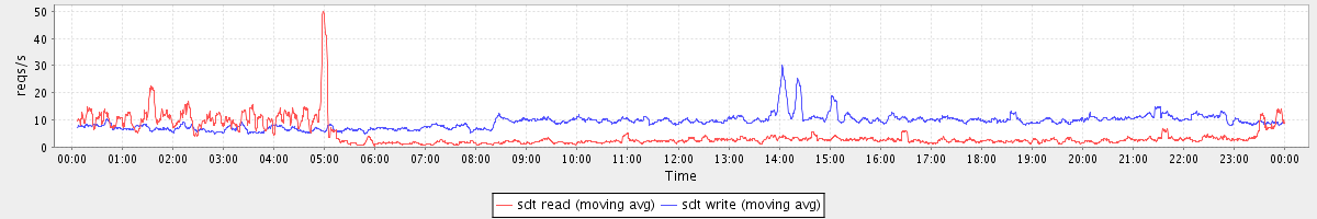 avg(sda read) = 1.28 avg(sda write) = 2.85