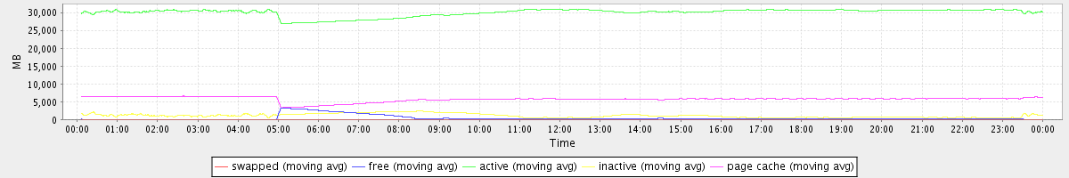 avg(swapped) = 0.25 avg(free) = 405.36 avg(active) = 29990.51 avg(inactive) = 1110.31 avg(page cache) = 5737.02