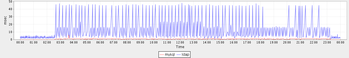 avg(mysql) = 0.25 avg(ldap) = 4.23