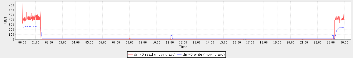 avg(dm-1 read) = 719.32 avg(dm-1 write) = 0.66
